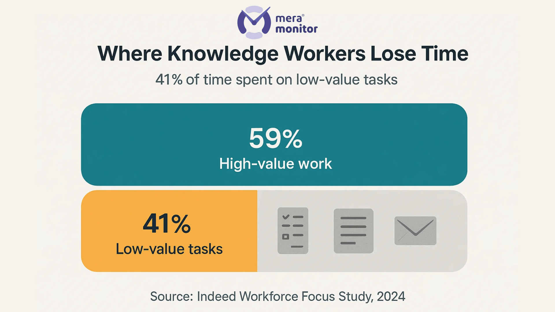 A study found that knowledge workers can spend up to 41% of their working time on administrative or non-core tasks.